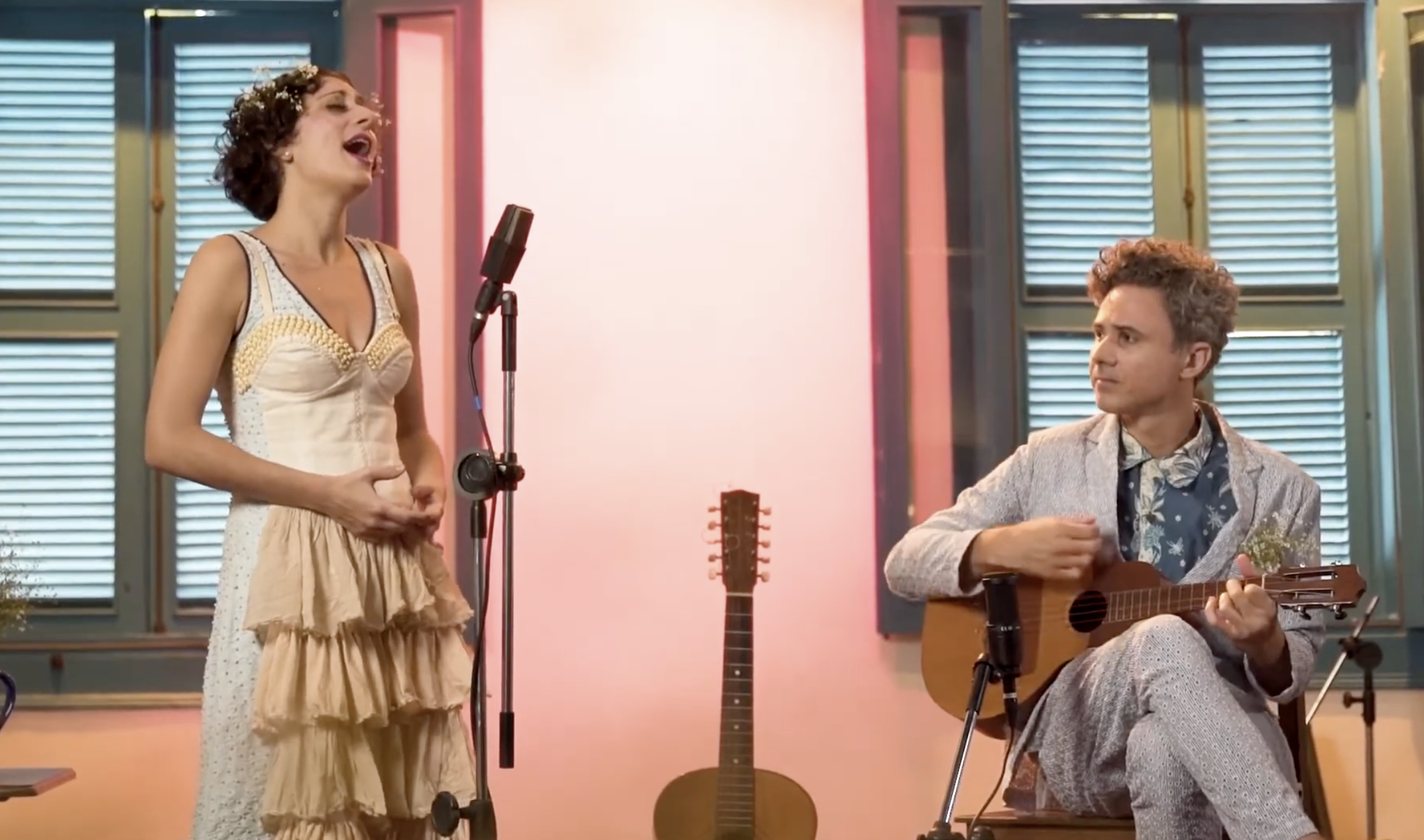 From classical to contemporary, from popular to erudite, from Brazil and the world, this is how this DUO formed by Lívia Nestrovski (voice) and her husband Fred Ferreira (guitar) presents itself. Together, they have shared the stage for 9 years, where they create “a human work, of beauty and delicacy, but above all, they tell stories in a very personal way” said Ronaldo Fraga (fashion designer) who, since 2016, has been designing the clothes for them.
